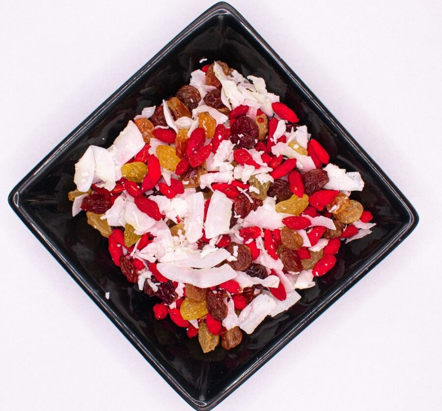 Contine: stafide aurii, stafide brune, goji, fulgi cocos