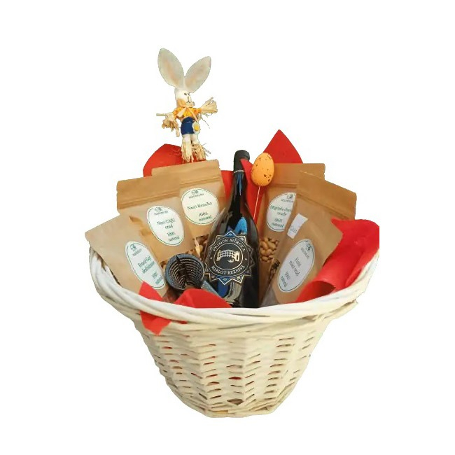 Un cos cadou pentru sarbatori cu produse sanatoase, 100% naturale care va impresiona cu siguranta. Cosul cadou poate fi daruit de Paste sau alte ocazii speciale