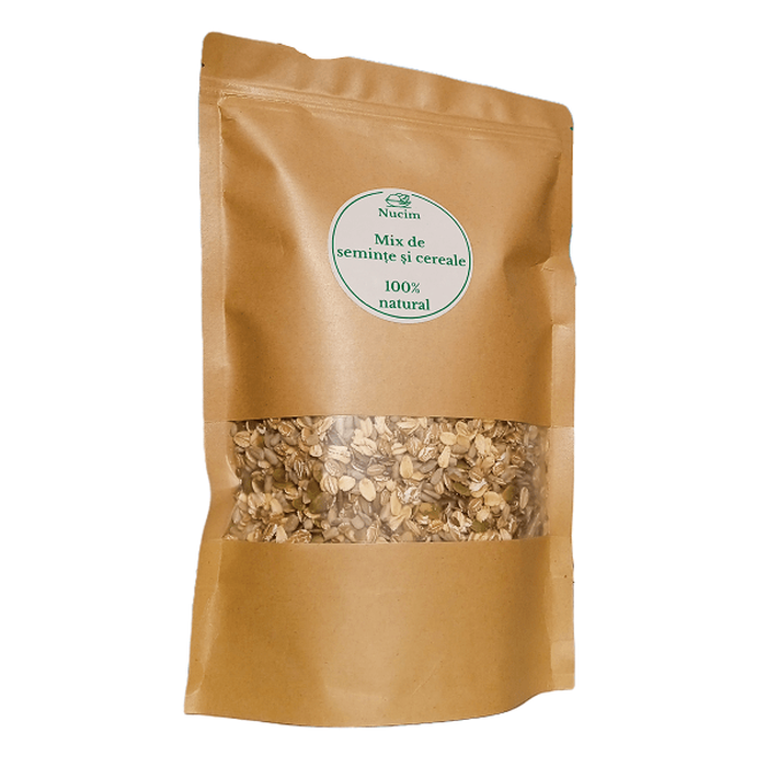 Mixul de seminte si cereale Nucim este ideal pentru a asigura o alimentatie sanatoasa, fiind bogat in fibre, proteine de buna calitate, vitamine, minerale si acizi grasi.