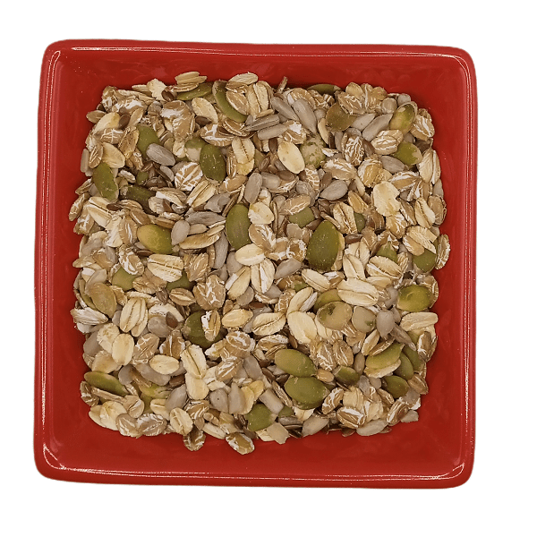 Acest mix imbinana beneficiile aduse organismului de fulgii de cereale integrale. Fulgii de secara si fulgii de ovaz, cu proprietatile benefice ale unora dintre cele mai sanatoase seminte - semintele de in, semintele de floarea soarelui si semintele de dovleac.